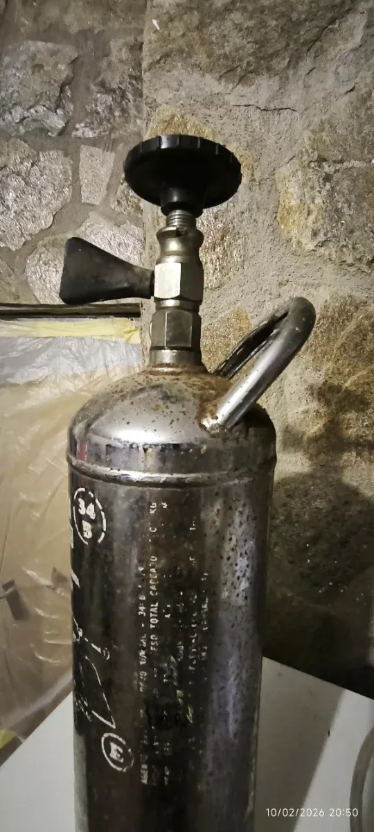 Se vende extintor de incendios. - Cilindro metálico. - Asa de transporte. - Válvula con maneral y boquilla.