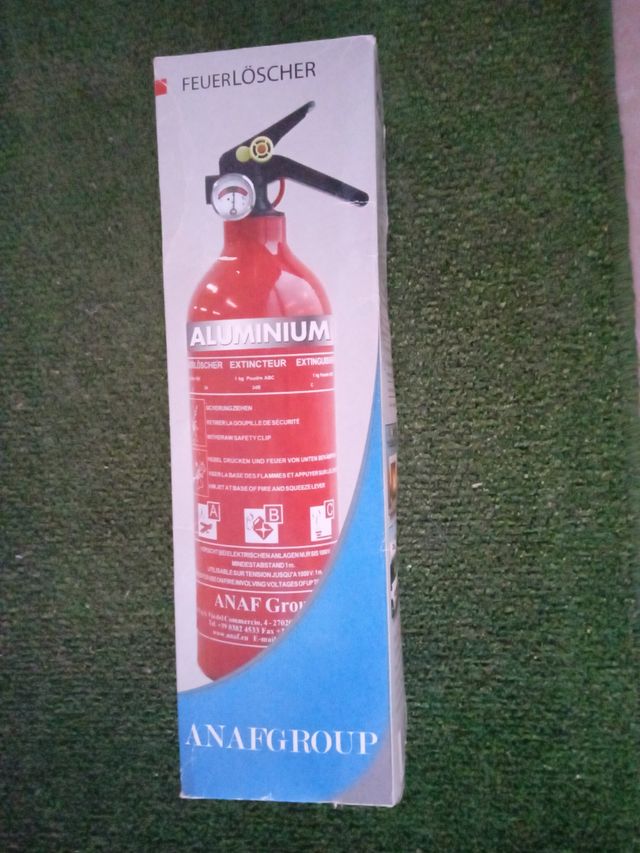 Pequeño extintor muy útil, para llevar en el coche, furgoneta o en casa. Nunca se ha usado, está cerrado como se compro