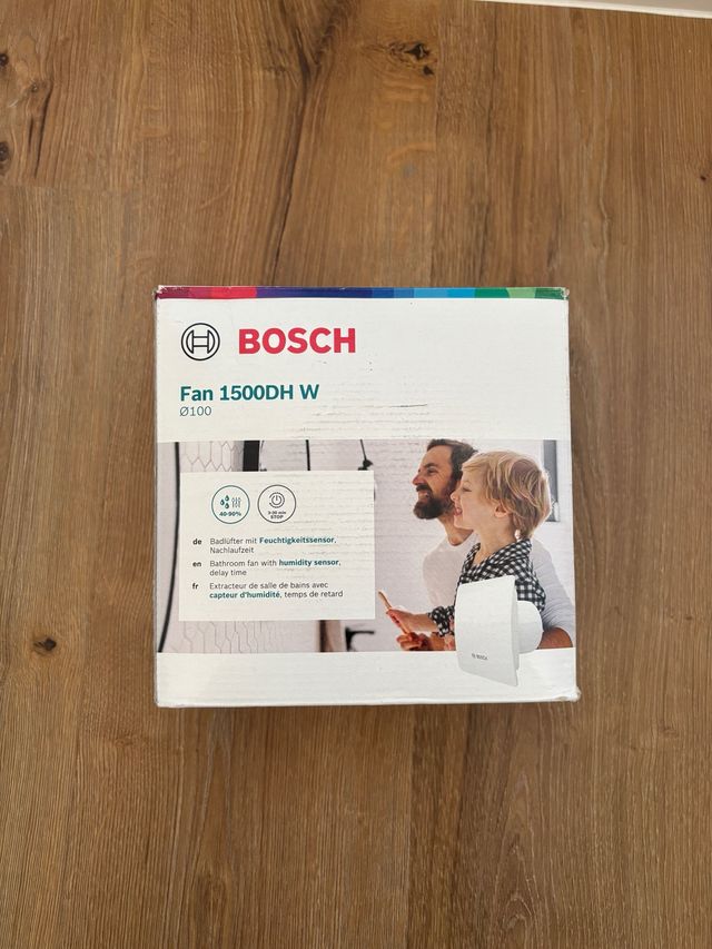 Extractor de baño Bosch Fan 1500DH W con sensor de humedad. - Modelo: 1500DH W - Diámetro: Ø100 - Incluye sensor de humedad y tiempo de retardo.