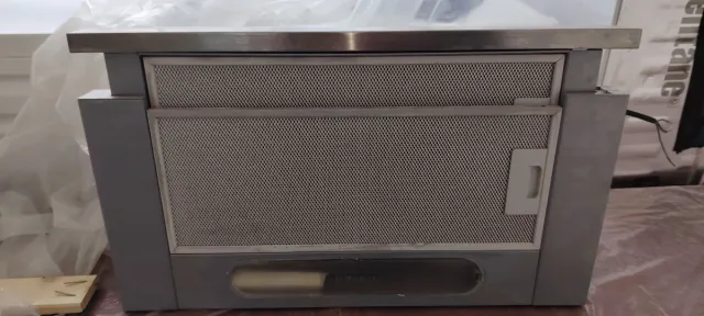 Extractor de cocina con acabado metálico. - Diseño moderno. - Filtros de malla. - Compartimento para luz.