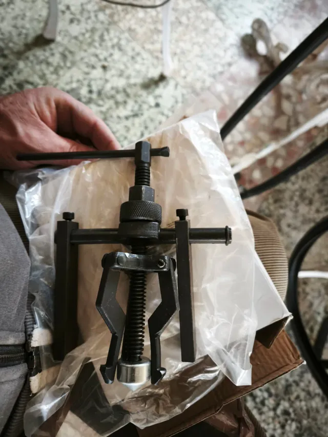 Herramienta para extraer rodamientos y cojinetes. - Construcción robusta de metal. - Diseño de tres garras. - Eje central roscado para ajuste.