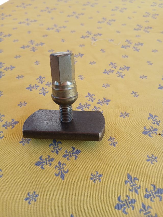 Detalles del productoHerramienta útil para extraer el volante de un Alfa Romeo 75 TS. Se compone de una pieza metálica con rosca y una base plana. - Ideal para facilitar el cambio de volante. - Se encuentra en buen estado, con señales normales de uso. - Perfecta para entusiastas del Alfa Romeo. Medidas del producto