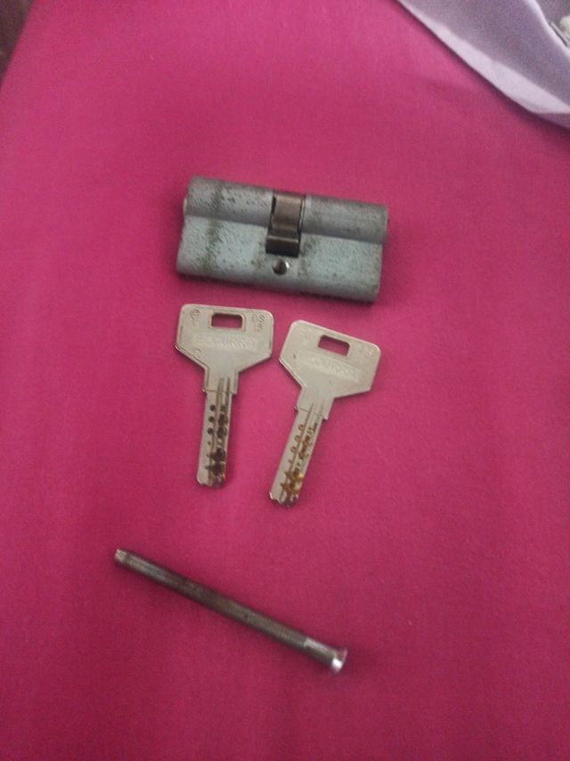 Bombín tipo cilindro de 6 cm. marca Ezcurra para cerradura de seguridad. 2 llaves y tornillo pasador. Funciona perfectamente.