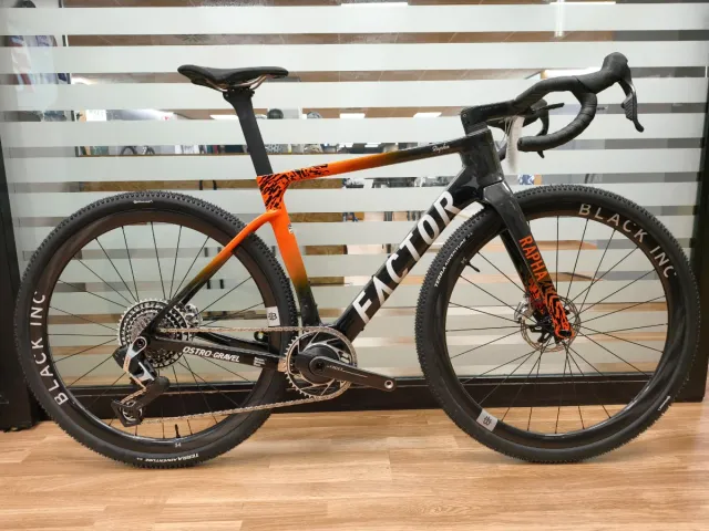 Detalles del productoFactor Ostro Gravel AMANI EDITION. Montada con SRAM Red XPLR. Mono-plato de 44T y bielas de 175. Cassette XPLR 11-46. Manillar Black Inc Aero 42-100. Tija Black Inc CARBON. Sillin Sellé Italia SLR SUPERFLOW Ti-316. Llantas Black Inc CARBON 34. Neumáticos Continental Terra Adventure perfil 45. Soporte GPS. Talla 54. Sillin a 75 en las fotos. ESPECTACULAR!!! Pieza única.