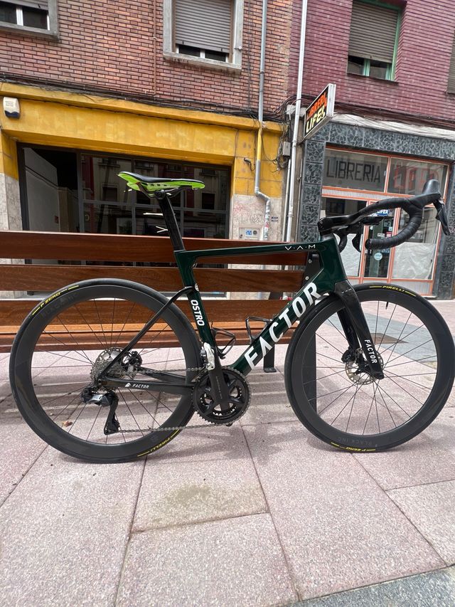 Se vende Factor Ostro Vam del 2023 (con factura) montada en shimano ultegra de 12v, ruedas de carbono Black Inc perfil 45. Todos los rodamientos son Ceramicspeed. Muy cuidada y con menos de 3000km.