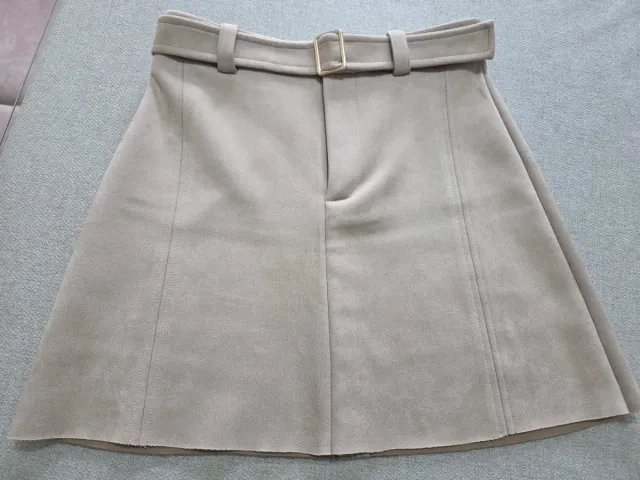 Falda ante con cinturón beige
