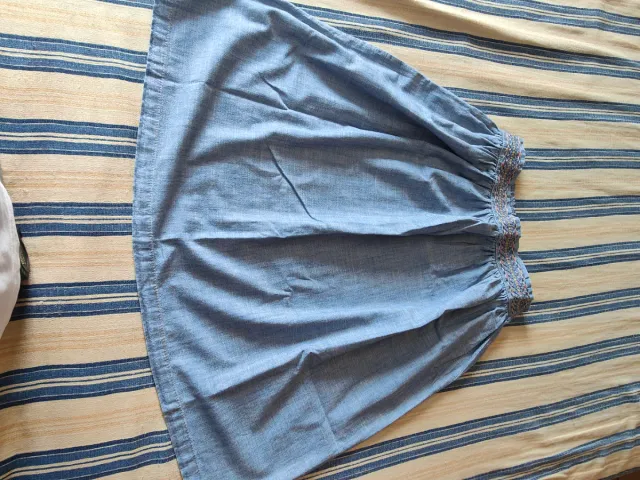 Falda de tela ligera con un bonito detalle bordado en la cintura. - Color azul. - Cintura elástica con bordado - Diseño con vuelo.