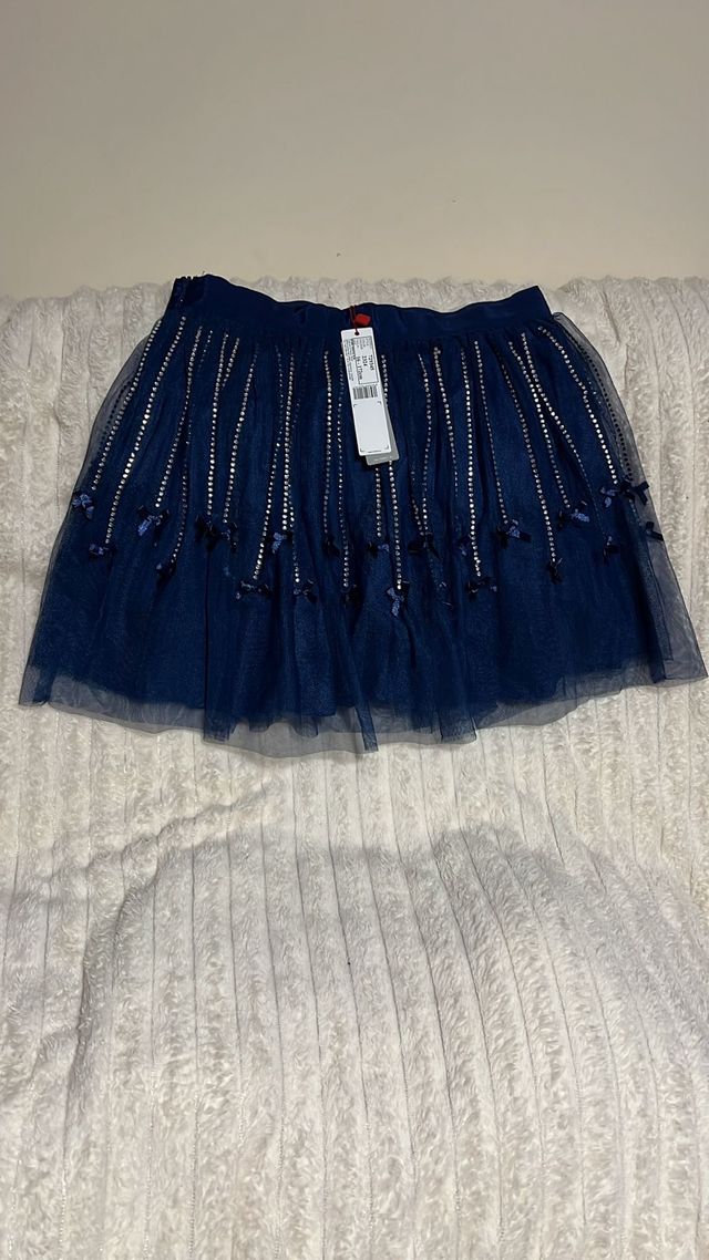 Falda azul marino con brillantes talla 16