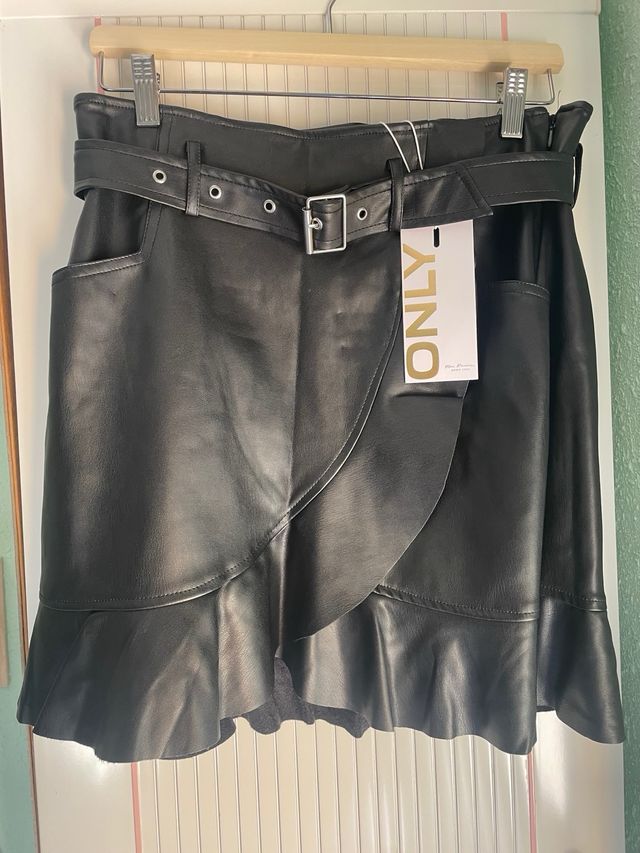 Falda con cinturón efecto piel