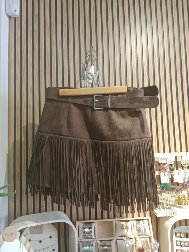 Falda corta con flecos y cinturón