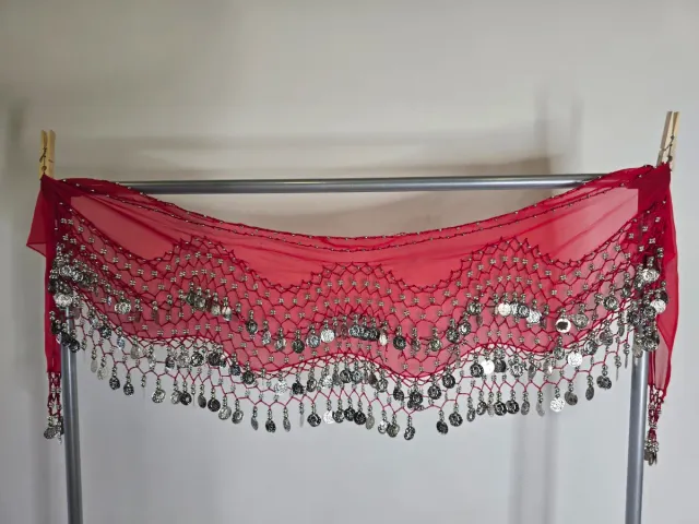 Falda danza del vientre roja con monedas