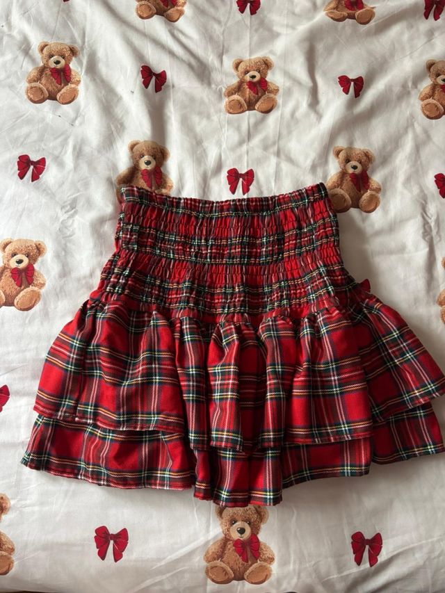 Falda de cuadros roja con volantes