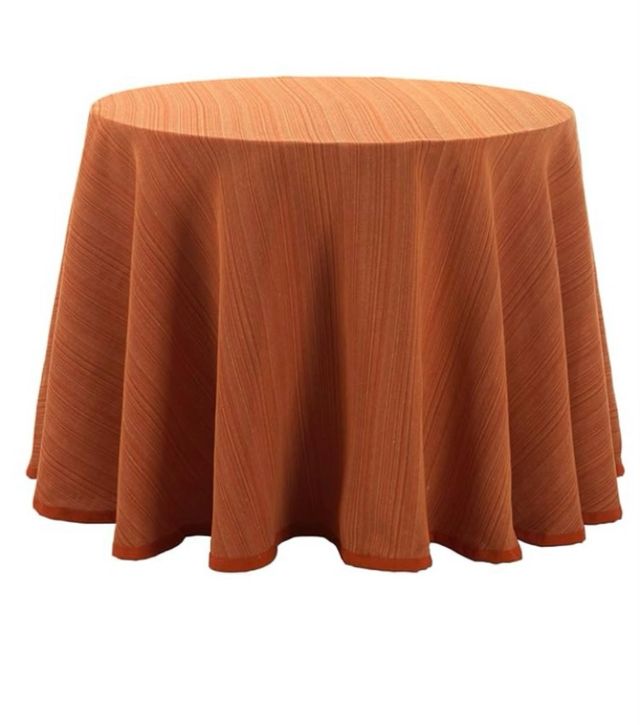 Falda de mesa redonda en color naranja. Mide 240 diámetro más largo.Para mesas de 90