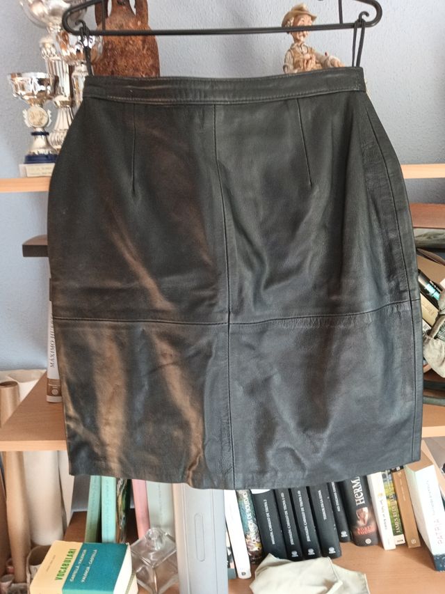Falda de piel auténtica negra