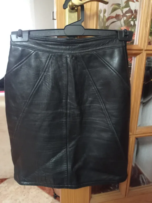 Falda de piel negra talla 42