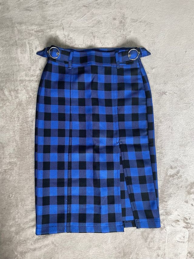 Falda de tubo cuadros azul Bershka talla S.