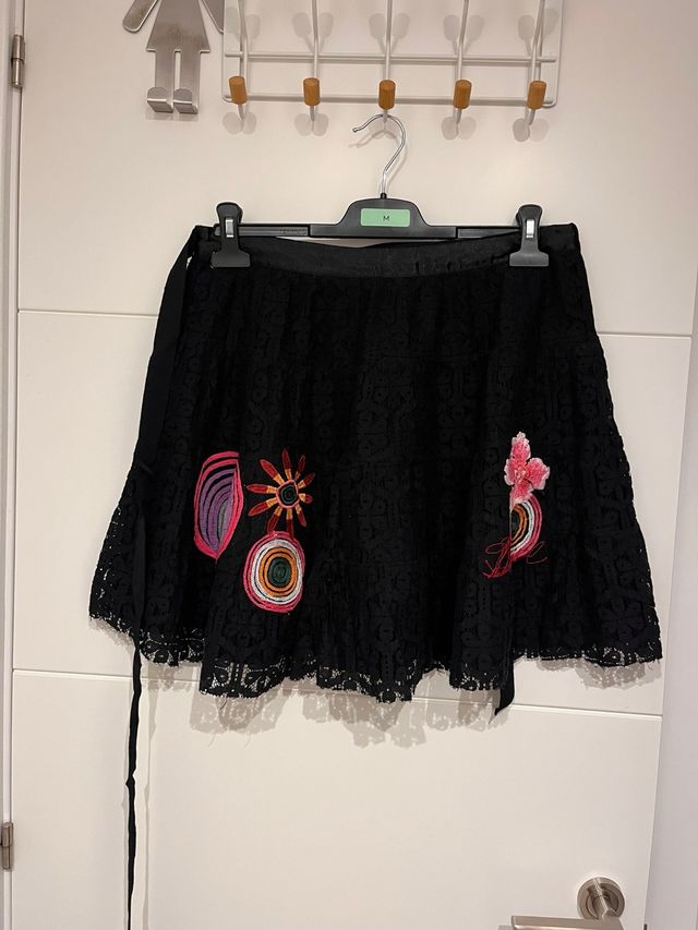 Falda Desigual negra bordada Talla M-L