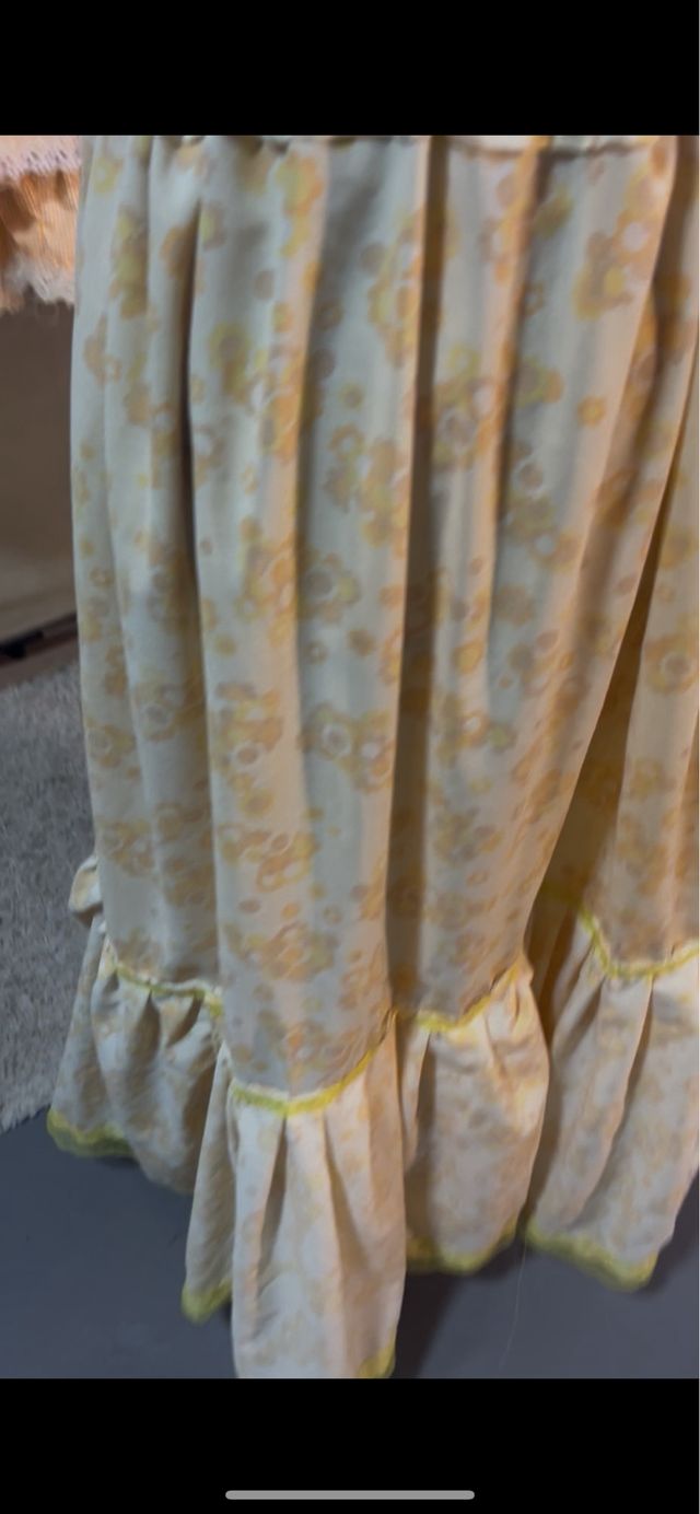 Detalles del productoFalda huertana de estilo zagalejo con un bonito estampado floral en tonos amarillos y naranjas. Presenta un volante en el bajo con un ribete amarillo.