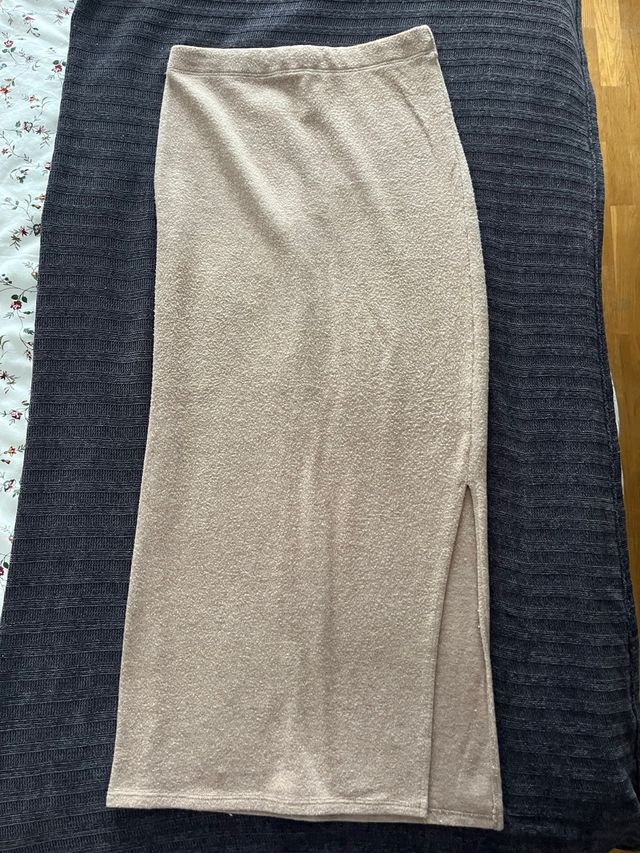 Falda larga beige con abertura