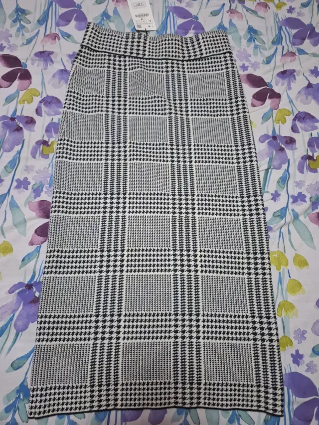 Falda larga de punto a cuadros