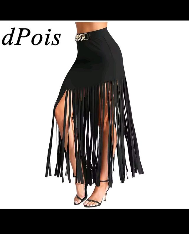 Falda larga negra flecos