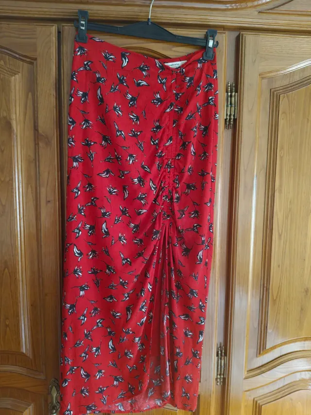 Falda larga roja estampada