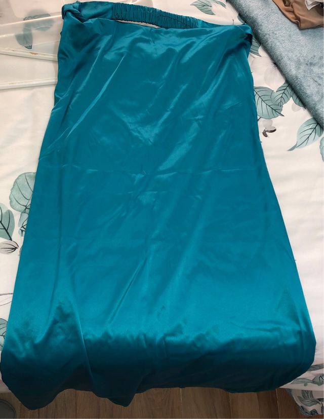 Falda larga satinada color verde azulado