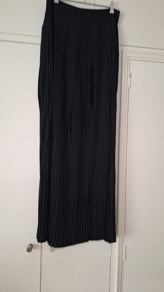 Falda larga seda negra plisada