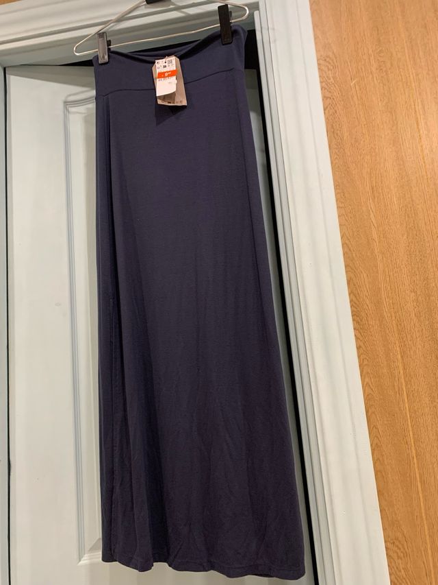 Falda larga Stradivarius azul marino con abertura