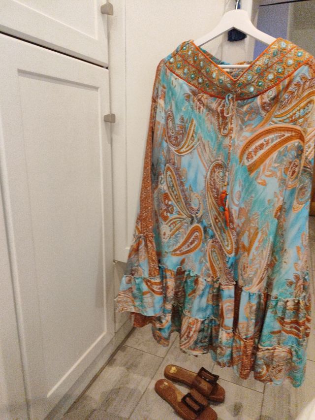 Falda larga turquesa y naranja