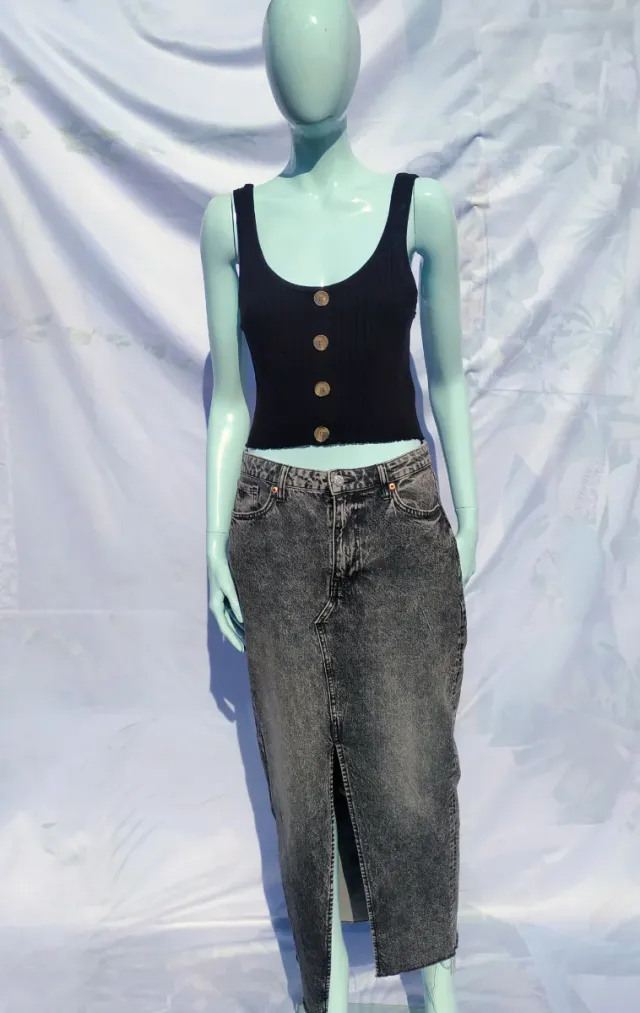 Falda larga vaquera gris