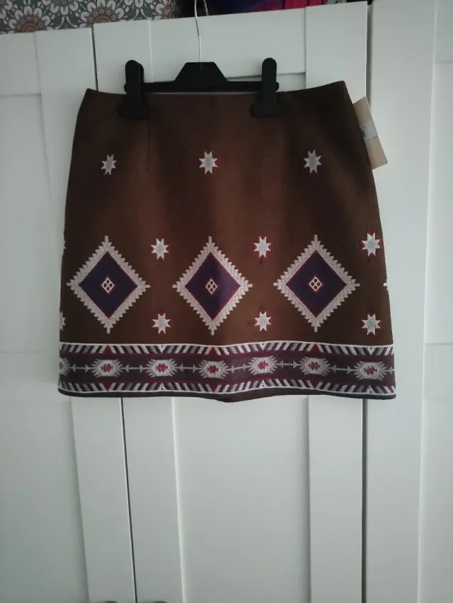 Falda corta con un diseño étnico y llamativo. Perfecta para añadir un toque especial a tu look.
