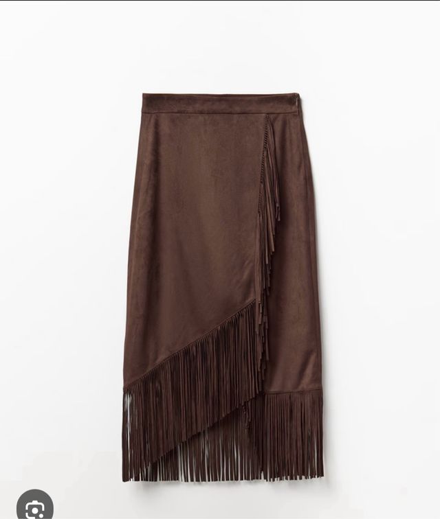 Falda marrón con flecos