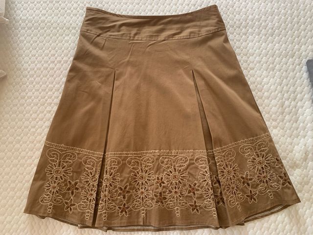 Falda marrón con tablas y bordado