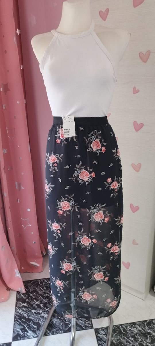 Falda midi H&M flores negra