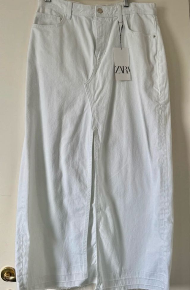 Falda midi vaquera blanca Zara Talla L