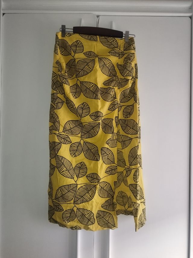 Falda midi Zara amarilla hojas
