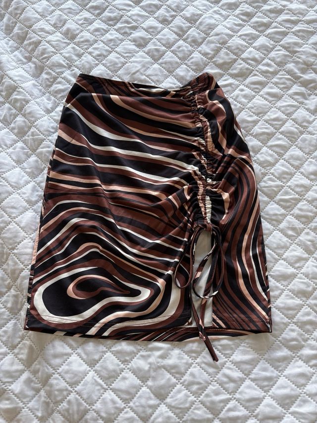 Falda mini marrón con fruncido