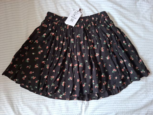 Falda negra floral S