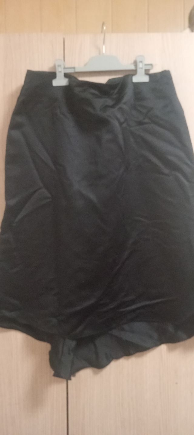 Falda elegante de color negro. - Material satinado. - Diseño moderno.