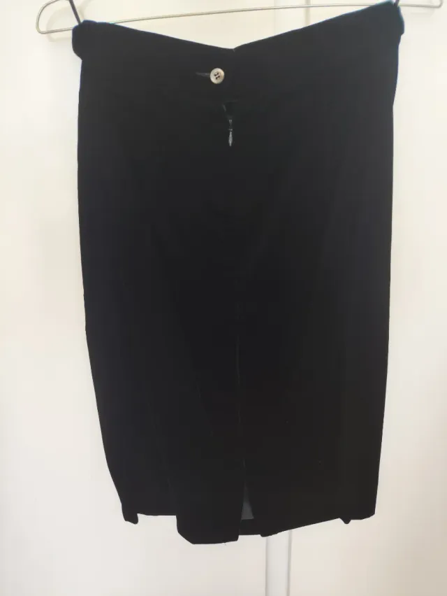 Elegante falda de terciopelo en color negro. Su diseño clásico la hace versátil para diversas ocasiones.