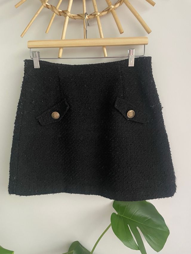 Falda negra tweed botones dorados