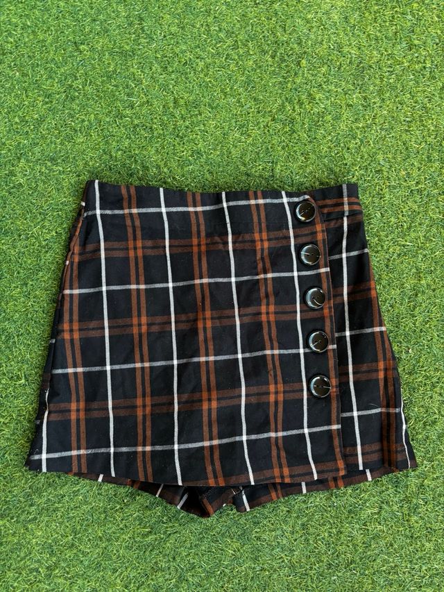 Falda pantalón cuadros negro y marrón