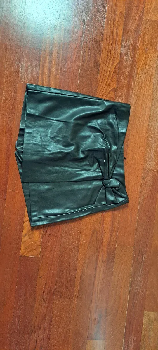 Falda-pantalón efecto cuero negra