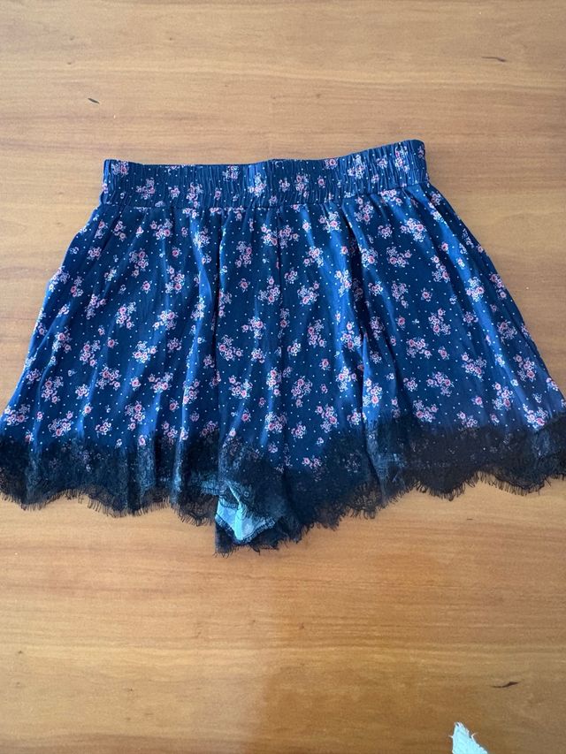 Falda-pantalón floral con encaje