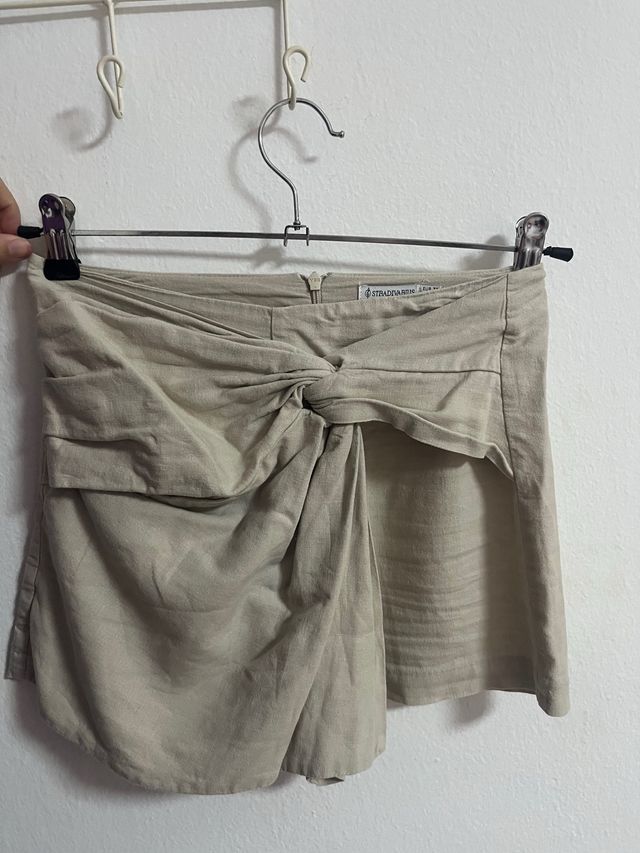 Falda pantalón Stradivarius beige