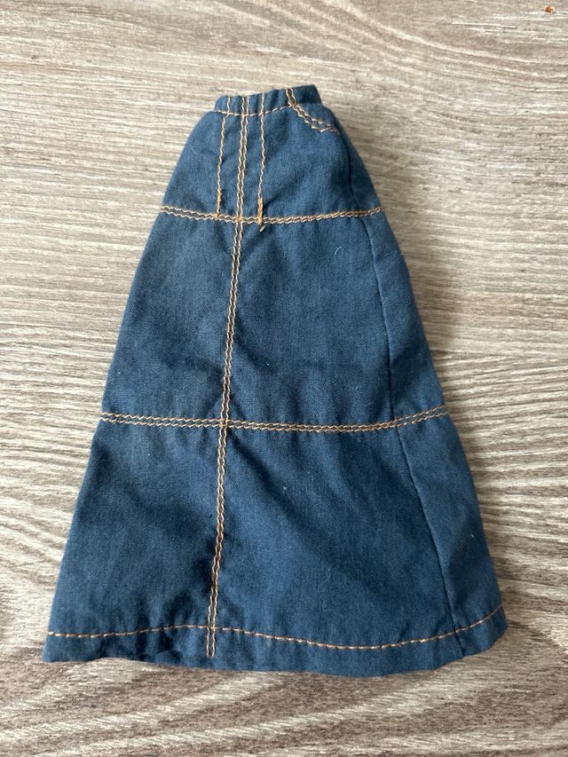 Detalles del productofalda para la muñeca bratz, pertenece a sasha primera edicion ( falda sin bolsillos, diferencia de las modernas ediciones) . se vende tal cual se ve en las fotos. falda azul con costuras naranjas y braguita en el interior.