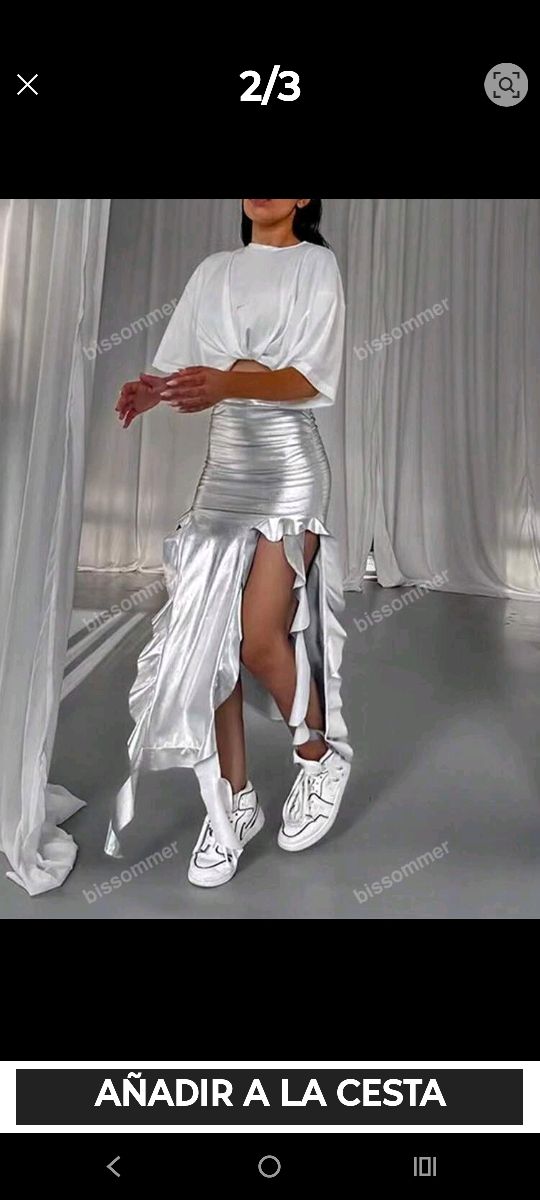 Falda plateada, disponible también en negra15