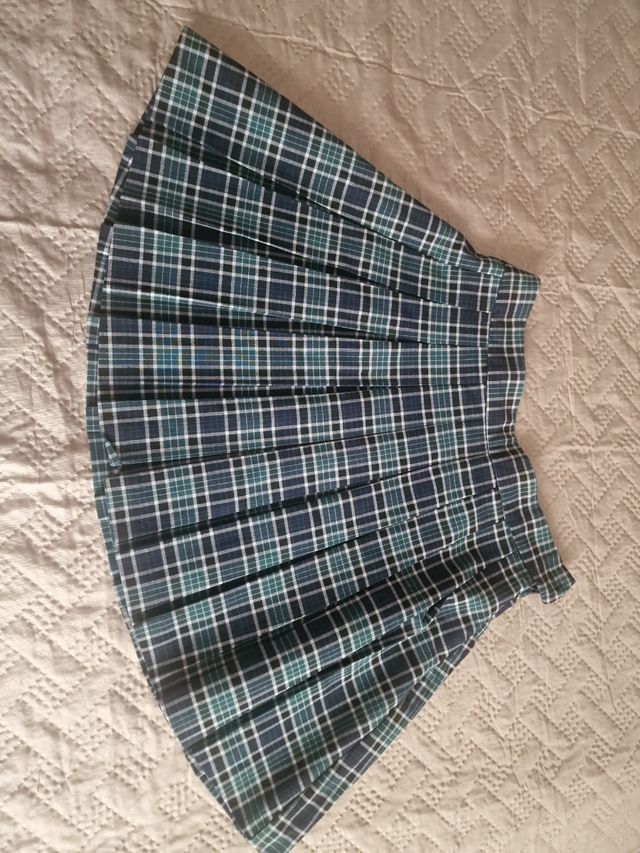 Falda plisada cuadros niña azul-verde