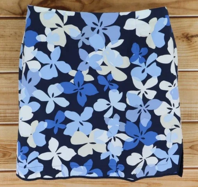 Falda recta estampada floral azul y blanco